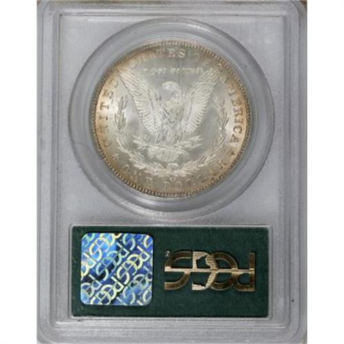 <B>1880-CC $1 8 Over Low 7 MS65 PCGS.</B></I> VAM-6. A Top 100 Variety. Well struck with electric blue in the center of the obverse and russet-gold around. The lustrous reverse has peach patina at the rims and light frost on the eagle. Housed in an old green label holder. <BR><BR><B>Coin Engraver:</B> George T. Morgan<BR><BR><b>Shipping:</b> Coins & Currency (<a target="_blank" href="http://www.heritageauctions.com/common/shipping.php">view shipping information</a>)
