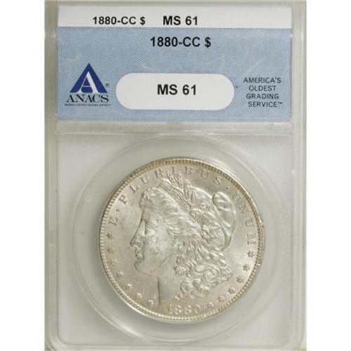 <B>1880-CC $1 MS61 ANACS.</B></I> . NGC Census: (70/4779). PCGS Population (215/9393). Mintage: 591,000. Numismedia Wsl. Price for NGC/PCGS coin in MS61: $446. (#7100)<BR><BR><B>Coin Engraver:</B> George T. Morgan<BR><BR><b>Shipping:</b> Coins & Currency (<a target="_blank" href="http://www.heritageauctions.com/common/shipping.php">view shipping information</a>)