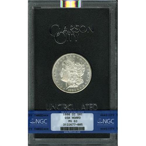 <B>1880-CC $1 MS63 NGC.</B></I> The box and Certificate of Issue are included. (#7100)<BR><BR><B>Coin Engraver:</B> George T. Morgan<BR><BR><b>Shipping:</b> Coins & Currency (<a target="_blank" href="http://www.heritageauctions.com/common/shipping.php">view shipping information</a>)