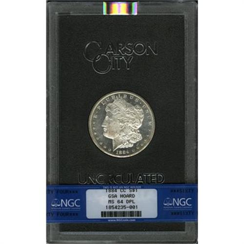 <B>1884-CC $1 MS64 Deep Mirror Prooflike NGC.</B></I> NGC Census: (548/236). PCGS Population (1159/613). Numismedia Wsl. Price for NGC/PCGS coin in MS64: $575. (#97101)<BR><BR><b>Shipping:</b> Coins & Currency (<a target="_blank" href="http://www.heritageauctions.com/common/shipping.php">view shipping information</a>)
