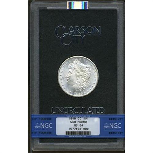 <B>1880-CC $1 MS64 NGC.</B></I> NGC Census: (1988/1261). PCGS Population (3552/2383). Mintage: 591,000. Numismedia Wsl. Price for NGC/PCGS coin in MS64: $565. (#7100)<BR><BR><B>Coin Engraver:</B> George T. Morgan<BR><BR><b>Shipping:</b> Coins & Currency (<a target="_blank" href="http://www.heritageauctions.com/common/shipping.php">view shipping information</a>)
