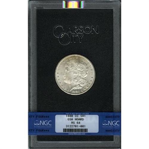 <B>1880-CC $1 MS64 NGC.</B></I> . NGC Census: (2042/1291). PCGS Population (3618/2472). Mintage: 591,000. Numismedia Wsl. Price for NGC/PCGS coin in MS64: $555. (#7100)<BR><BR><B>Coin Engraver:</B> George T. Morgan<BR><BR><b>Shipping:</b> Coins & Currency (<a target="_blank" href="http://www.heritageauctions.com/common/shipping.php">view shipping information</a>)