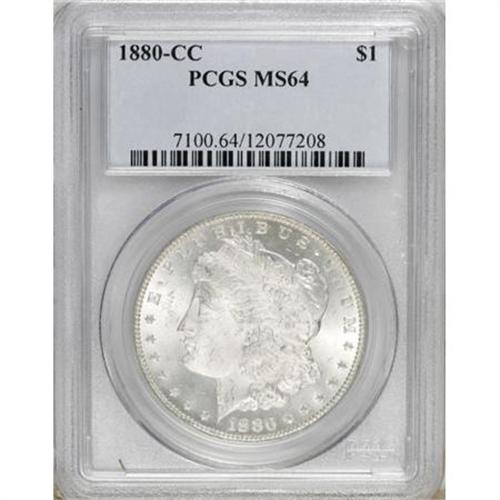 <B>1880-CC $1 MS64 PCGS.</B></I> Satiny luster emanates from the silver-gray surfaces of this neat-Gem Carson City issue. A scattering of obverse luster grazes defines the grade. Generally well struck, save for minor weakness in the centers.<BR><BR><B>Coin Engraver:</B> George T. Morgan<BR><BR><b>Shipping:</b> Coins & Currency (<a target="_blank" href="http://www.heritageauctions.com/common/shipping.php">view shipping information</a>)