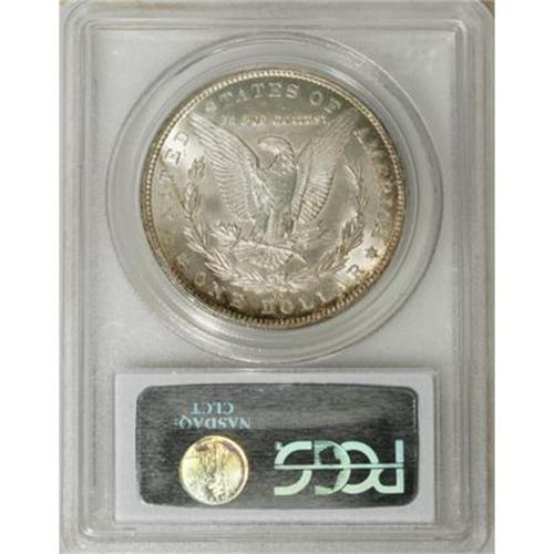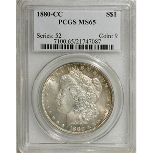 <B>1880-CC $1 MS65 PCGS.</B></I> A popular Carson City issue, represented here by a Gem with untoned central devices and peripheries that show delicate touches of copper and navy-blue patina. Amazing eye appeal.<BR><BR><B>Coin Engraver:</B> George T. Morgan<BR><BR><b>Shipping:</b> Coins & Currency (<a target="_blank" href="http://www.heritageauctions.com/common/shipping.php">view shipping information</a>)