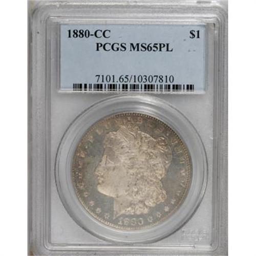 <B>1880-CC $1 MS65 Prooflike PCGS.</B></I> A richly toned gold, orange, amber, and silver-gray example that offers strong reflectivity through the patina. A touch soft at the highpoints, but boldly struck otherwise with excellent eye appeal. PCGS has graded only seven finer Prooflike pieces (10/07).<BR><BR><B>Coin Engraver:</B> George T. Morgan<BR><BR><b>Shipping:</b> Coins & Currency (<a target="_blank" href="http://www.heritageauctions.com/common/shipping.php">view shipping information</a>)