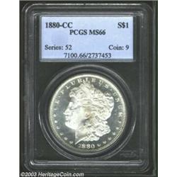 1880-CC $1 MS66 PCGS. Bright and highly lustrous with intense mint frost on the devices. The fiel...