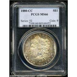 <table><tr><td><TABLE cellSpacing=0 cellPadding=0 width="100%" bgColor=#000000 border=0><TBODY> <TR><TD width="100%"><TABLE cellSpacing=1 cellPadding=3 width="100%" border=0><TBODY><TR><TD width="100%" bgColor=#79735c><FONT face=arial color=#ffffff size=3><B>Description</B> </FONT></TD></TR><TR><TD width="100%" bgColor=#ffffff><FONT face=arial size=2><B>1880-CC $1 MS66 PCGS.</B></I> The rich, original patina seen on the surfaces of this splendid example creates a brand of aesthetic appeal which should prove irresistible to the lover of deep toning. The apricot, dark-green, and russet colors which appear most prominently cover sharper-than-average features, and fields that glow above vibrant underlying mint luster. A diagonal mark just above Liberty's eyebrow is the sole obverse distraction, while a pair of moderate blemishes near the reverse center seem well hidden by the deep toning. A truly exceptional premium Gem, this coin should elicit considerable interest from high-grade Morgan dollar specialists. </FONT></TD></TR></TBODY></TABLE></TD></TR></TBODY></TABLE><BR><A name=PricesRealized></A><TABLE cellSpacing=0 cellPadding=0 width="100%" bgColor=#000000 border=0><TBODY><TR><TD width="100%"><TABLE cellSpacing=1 cellPadding=3 width="100%" border=0><TBODY><TR><TD width="100%" bgColor=#79735c><A name=PR><FONT face=arial color=#ffffff size=3><B>Previous Prices from Heritage Auctions</B> </FONT></A></TD></TR><TR><TD bgColor=#f6f6ed><TABLE cellSpacing=0 cellPadding=0 width="100%" border=1><TBODY><TR><TD align=middle width="33%"><B>Date</B></TD><TD align=middle width="33%"><B>Service</B></TD><TD align=middle width="33%"><B>Price</B></TD></TR><TR bgColor=whitesmoke><TD width="33%"><B>09/20/2003</B></TD><TD width="33%">PCGS</TD><TD width="33%">$2,300.00</TD></TR><TR bgColor=whitesmoke><TD width="33%"><B>09/20/2003</B></TD><TD width="33%">PCGS</TD><TD width="33%">$2,185.00</TD></TR><TR bgColor=whitesmoke><TD width="33%"><B>09/20/2003</B></TD><TD width="33%">PCGS</TD><TD width="33%">$2,185.00</TD></TR><TR bgColor=whitesmoke><TD width="33%"><B>07/29/2003</B></TD><TD width="33%">PCGS</TD><TD width="33%">$2,645.00</TD></TR><TR bgColor=whitesmoke><TD width="33%"><B>07/29/2003</B></TD><TD width="33%">PCGS</TD><TD width="33%">$2,300.00</TD></TR><TR bgColor=whitesmoke><TD width="33%"><B>07/29/2003</B></TD><TD width="33%">PCGS</TD><TD width="33%">$2,300.00</TD></TR><TR bgColor=whitesmoke><TD width="33%"><B>07/29/2003</B></TD><TD width="33%">PCGS</TD><TD width="33%">$2,127.50</TD></TR><TR bgColor=whitesmoke><TD width="33%"><B>07/29/2003</B></TD><TD width="33%">PCGS</TD><TD width="33%">$2,012.50</TD></TR><TR bgColor=whitesmoke><TD width="33%"><B>07/29/2003</B></TD><TD width="33%">PCGS</TD><TD width="33%">$2,012.50</TD></TR><TR bgColor=whitesmoke><TD width="33%"><B>08/06/2003</B></TD><TD width="33%">PCGS</TD><TD width="33%">$2,012.50</TD></TR><TR bgColor=whitesmoke><TD width="33%"><B>08/06/2003</B></TD><TD width="33%">PCGS</TD><TD width="33%">$2,242.50</TD></TR><TR bgColor=whitesmoke><TD width="33%"><B>08/06/2003</B></TD><TD width="33%">PCGS</TD><TD width="33%">$2,242.50</TD></TR><TR bgColor=whitesmoke><TD width="33%"><B>05/31/2003</B></TD><TD width="33%">PCGS</TD><TD width="33%">$2,702.50</TD></TR><TR bgColor=whitesmoke><TD width="33%"><B>05/31/2003</B></TD><TD width="33%">PCGS</TD><TD width="33%">$2,645.00</TD></TR><TR bgColor=whitesmoke><TD width="33%"><B>05/31/2003</B></TD><TD width="33%">PCGS</TD><TD width="33%">$2,645.00</TD></TR><TR bgColor=whitesmoke><TD width="33%"><B>01/11/2003</B></TD><TD width="33%">PCGS</TD><TD width="33%">$1,897.50</TD></TR><TR bgColor=whitesmoke><TD width="33%"><B>11/23/2002</B></TD><TD width="33%">PCGS</TD><TD width="33%">$2,070.00</TD></TR><TR bgColor=whitesmoke><TD width="33%"><B>11/23/2002</B></TD><TD width="33%">PCGS</TD><TD width="33%">$2,070.00</TD></TR><TR bgColor=whitesmoke><TD width="33%"><B>09/28/2002</B></TD><TD width="33%">PCGS</TD><TD width="33%">$2,357.50</TD></TR><TR bgColor=whitesmoke><TD width="33%"><B>06/08/2002</B></TD><TD width="33%">PCGS</TD><TD width="33%">$4,600.00</TD></TR><TR bgColor=whitesmoke><TD width="33%"><B>06/08/2002</B></TD><TD width="33%">PCGS</TD><TD width="33%">$4,600.00</TD></TR><TR bgColor=whitesmoke><TD width="33%"><B>04/27/2002</B></TD><TD width="33%">PCGS</TD><TD width="33%">$2,300.00</TD></TR><TR bgColor=whitesmoke><TD width="33%"><B>02/23/2002</B></TD><TD width="33%">PCGS</TD><TD width="33%">$2,070.00</TD></TR><TR bgColor=whitesmoke><TD width="33%"><B>02/23/2002</B></TD><TD width="33%">PCGS</TD><TD width="33%">$2,070.00</TD></TR><TR bgColor=whitesmoke><TD width="33%"><B>02/23/2002</B></TD><TD width="33%">NGC</TD><TD width="33%">$1,495.00</TD></TR><TR bgColor=whitesmoke><TD width="33%"><B>01/12/2002</B></TD><TD width="33%">PCGS</TD><TD width="33%">$1,983.75</TD></TR><TR bgColor=whitesmoke><TD width="33%"><B>01/12/2002</B></TD><TD width="33%">PCGS</TD><TD width="33%">$1,983.75</TD></TR><TR bgColor=whitesmoke><TD width="33%"><B>11/15/2001</B></TD><TD width="33%">PCGS</TD><TD width="33%">$1,782.50</TD></TR><TR bgColor=whitesmoke><TD width="33%"><B>05/31/2001</B></TD><TD width="33%">NGC</TD><TD width="33%">$1,380.00</TD></TR><TR bgColor=whitesmoke><TD width="33%"><B>05/31/2001</B></TD><TD width="33%">NGC</TD><TD width="33%">$1,380.00</TD></TR><TR bgColor=whitesmoke><TD width="33%"><B>08/07/2000</B></TD><TD width="33%">PCGS</TD><TD width="33%">$1,955.00</TD></TR><TR bgColor=whitesmoke><TD width="33%"><B>05/05/2000</B></TD><TD width="33%">PCGS</TD><TD width="33%">$1,955.00</TD></TR><TR bgColor=whitesmoke><TD width="33%"><B>05/05/2000</B></TD><TD width="33%">PCGS</TD><TD width="33%">$1,955.00</TD></TR><TR bgColor=whitesmoke><TD width="33%"><B>05/05/2000</B></TD><TD width="33%">PCGS</TD><TD width="33%">$1,955.00</TD></TR><TR bgColor=whitesmoke><TD width="33%"><B>08/14/1999</B></TD><TD width="33%">PCGS</TD><TD width="33%">$1,840.00</TD></TR><TR bgColor=whitesmoke><TD width="33%"><B>08/14/1999</B></TD><TD width="33%">PCGS</TD><TD width="33%">$1