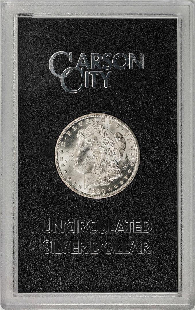 One 1880-CC $1 Morgan Silver Dollar Coin GSA Hoard Uncirculated w/Box & COA.