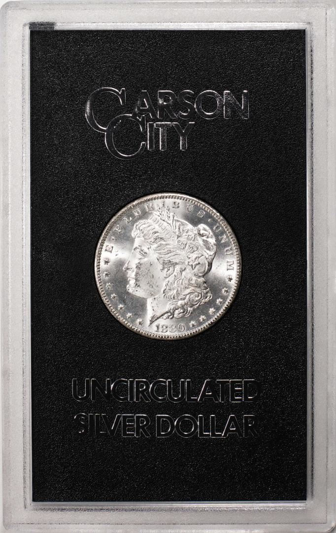 One 1880-CC $1 Morgan Silver Dollar Coin GSA Hoard Uncirculated w/Box & COA.
