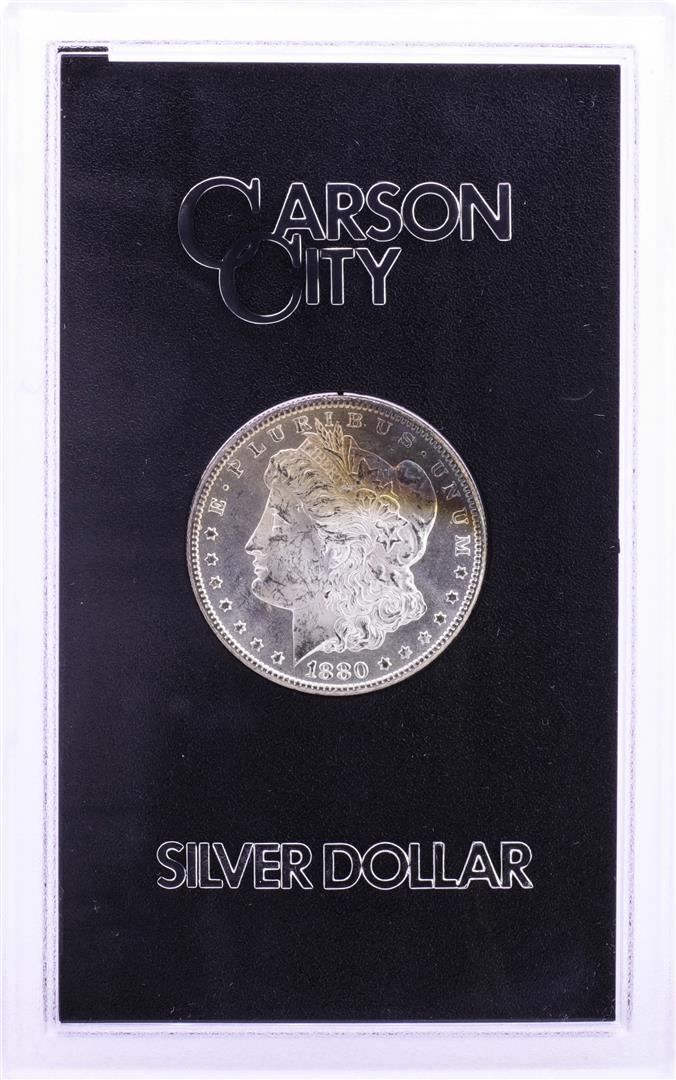 One 1880-CC $1 Morgan Silver Dollar Coin GSA Hoard w/Box Nice Toning.