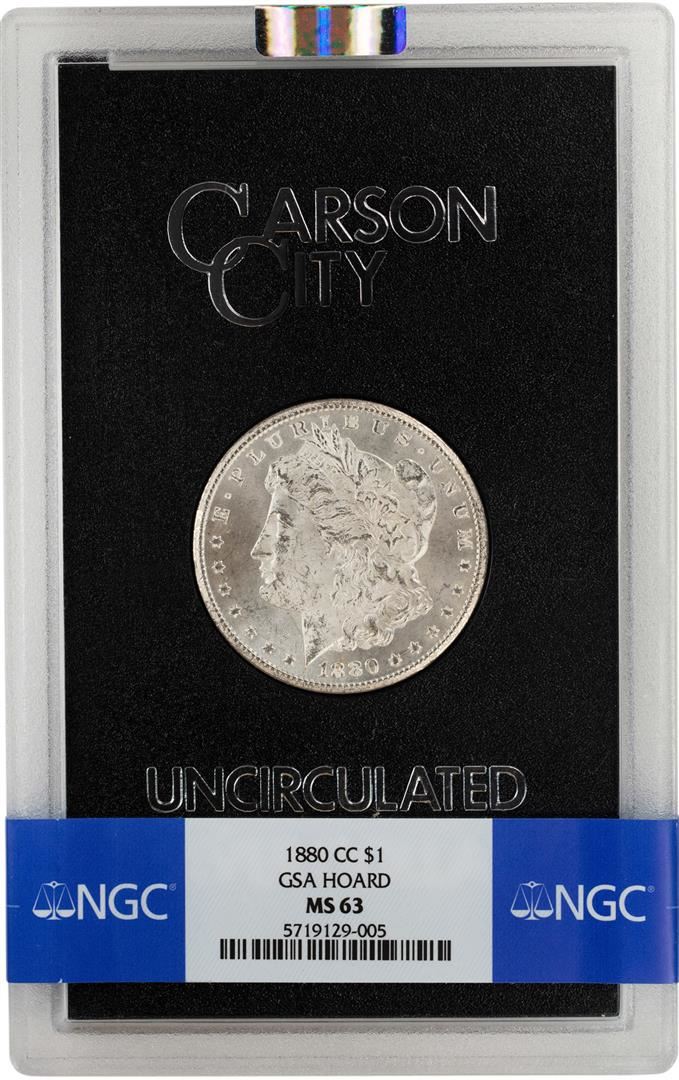 One 1880-CC $1 Morgan Silver Dollar Coin GSA NGC MS63. NGC Certified.