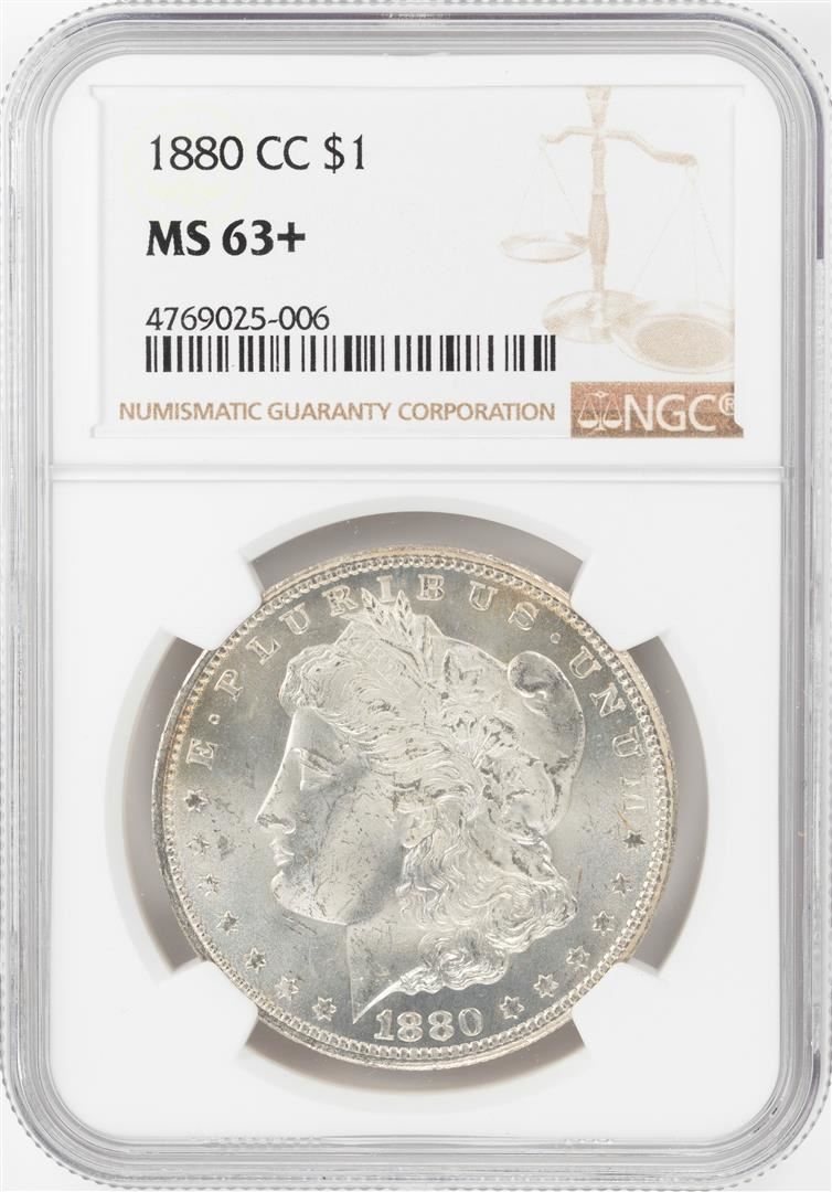 One 1880-CC $1 Morgan Silver Dollar Coin NGC MS63+. NGC Certified.