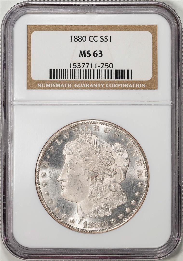 One 1880-CC $1 Morgan Silver Dollar Coin NGC MS63. NGC Certified.