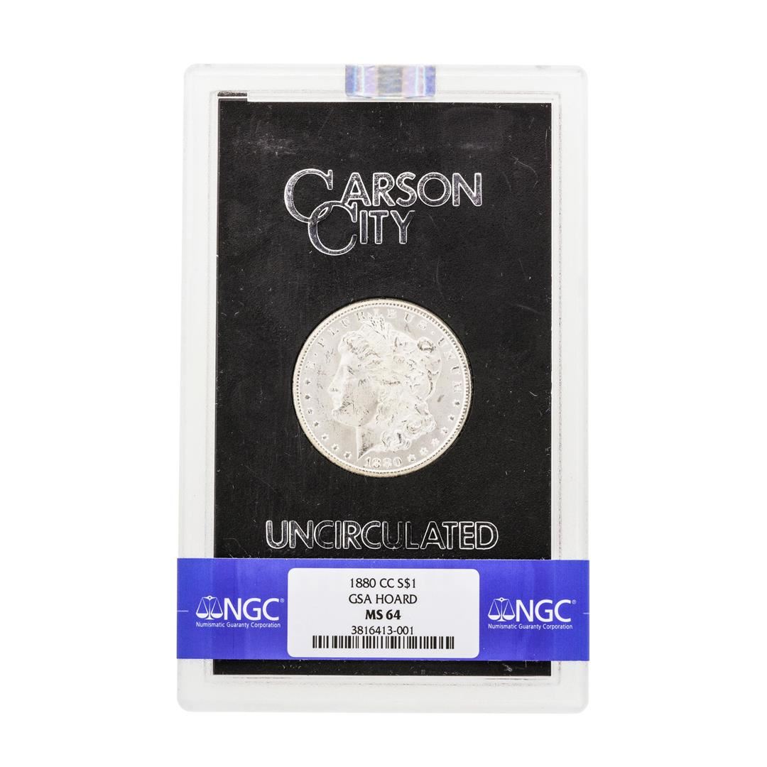 One 1880-CC $1 Morgan Silver Dollar Coin NGC MS64 GSA. NGC Certified.