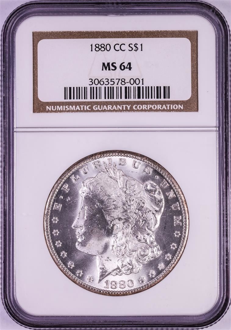 One 1880-CC $1 Morgan Silver Dollar Coin NGC MS64. NGC Certified.