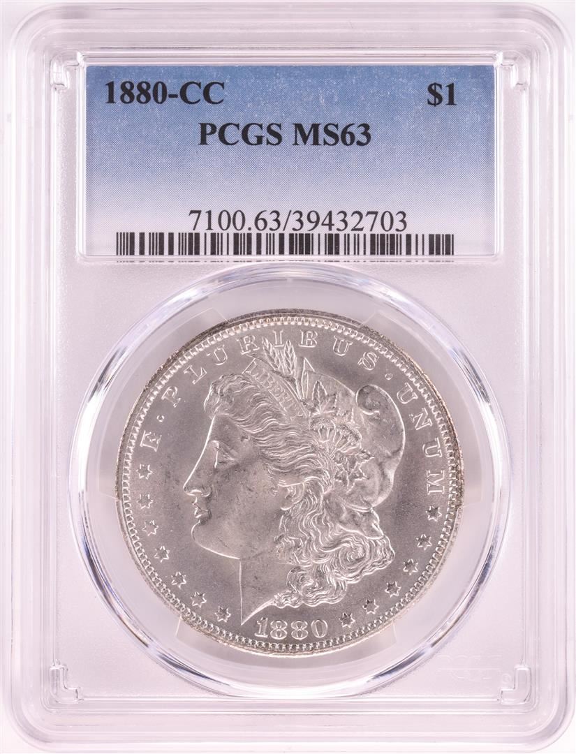 One 1880-CC $1 Morgan Silver Dollar Coin PCGS MS63. PCGS Graded.