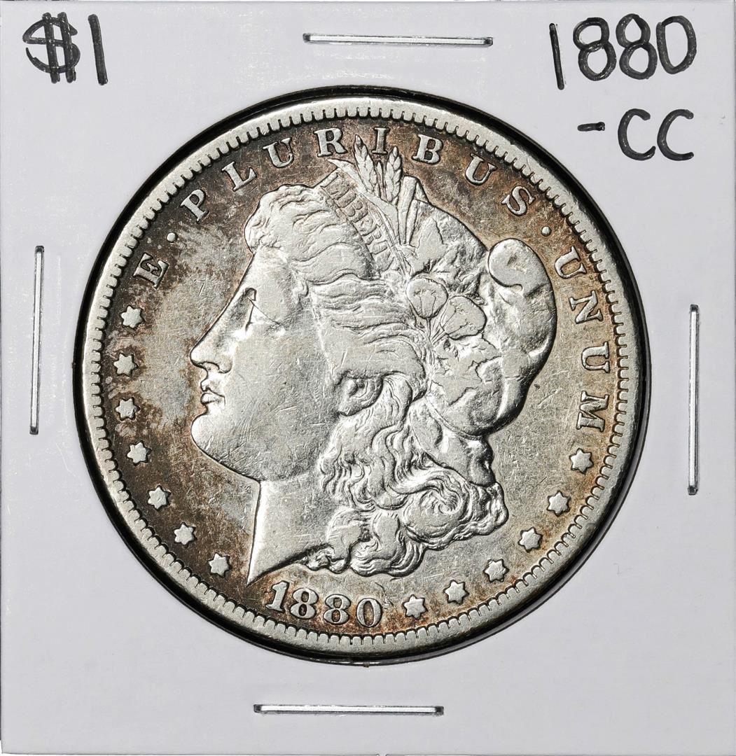 One 1880-CC $1 Morgan Silver Dollar Coin.