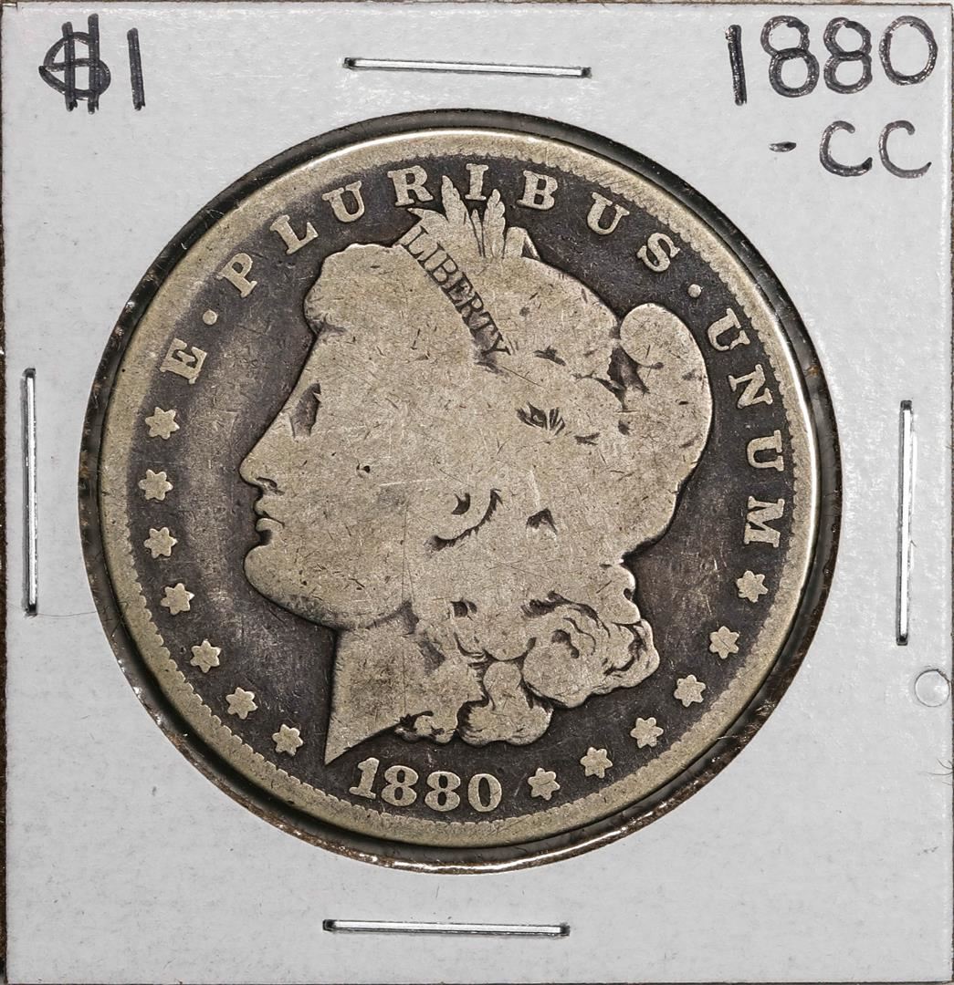 One 1880-CC $1 Morgan Silver Dollar Coin.