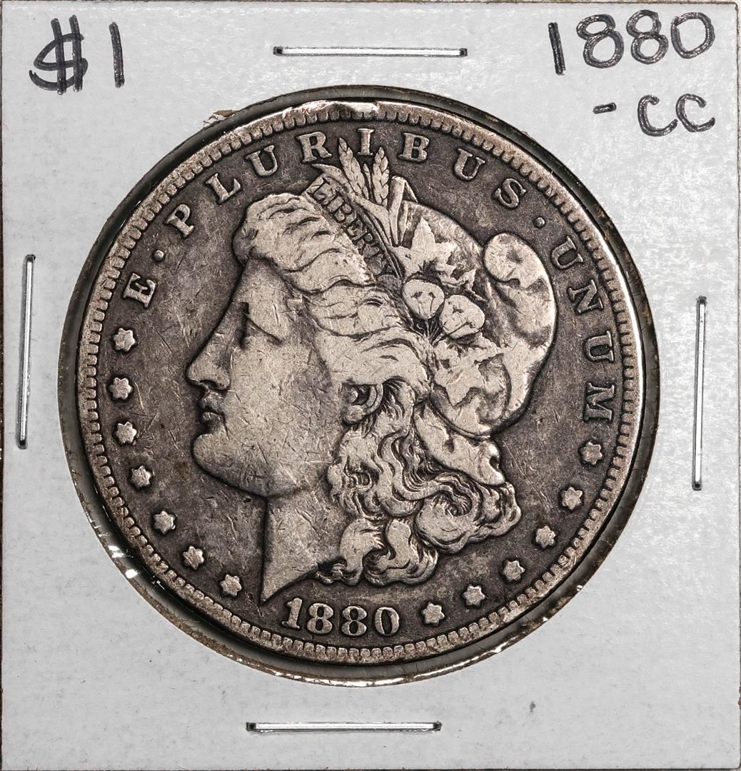 One 1880-CC $1 Morgan Silver Dollar Coin.