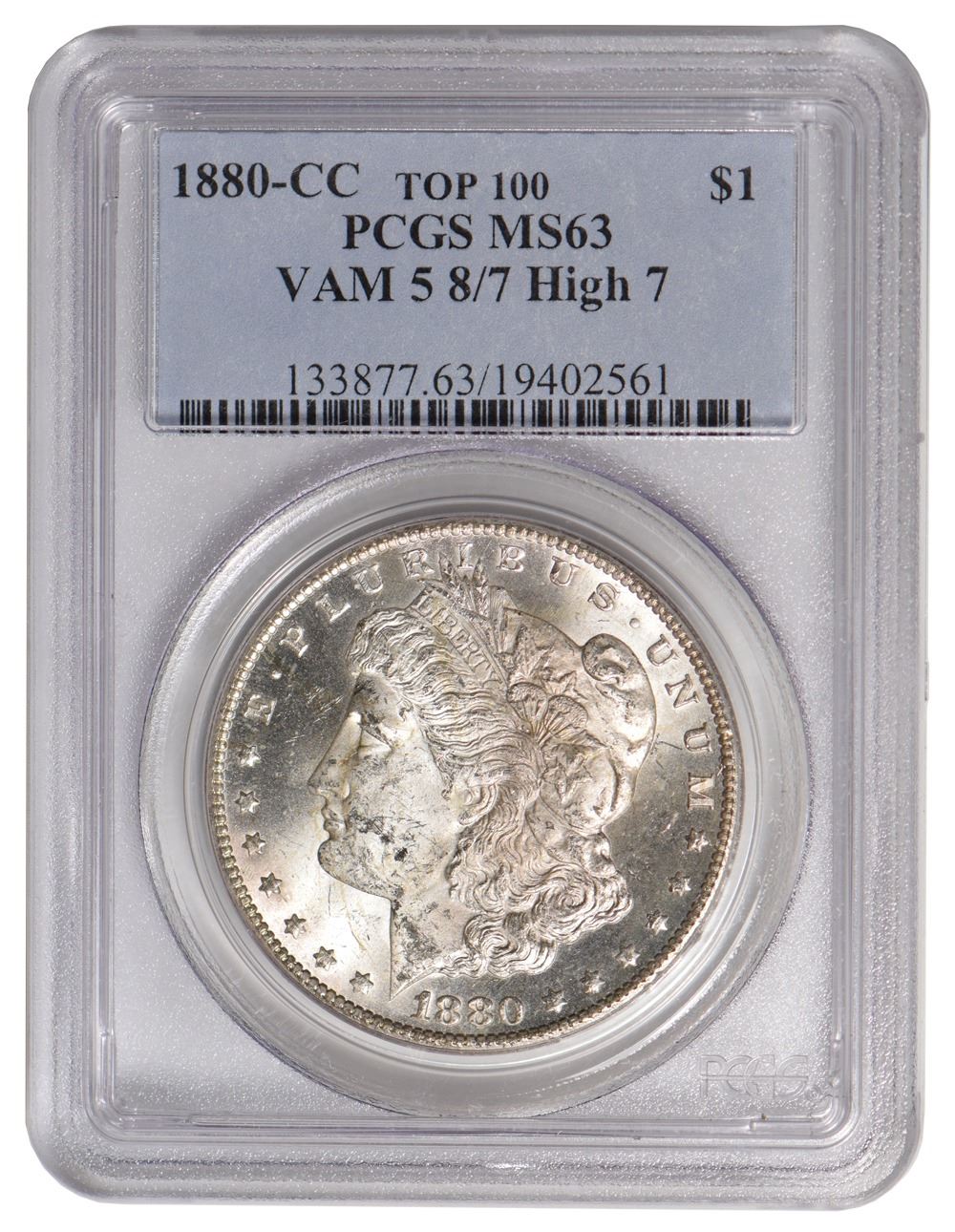 One 1880-CC $1 Morgan Silver Dollar PCGS MS63.