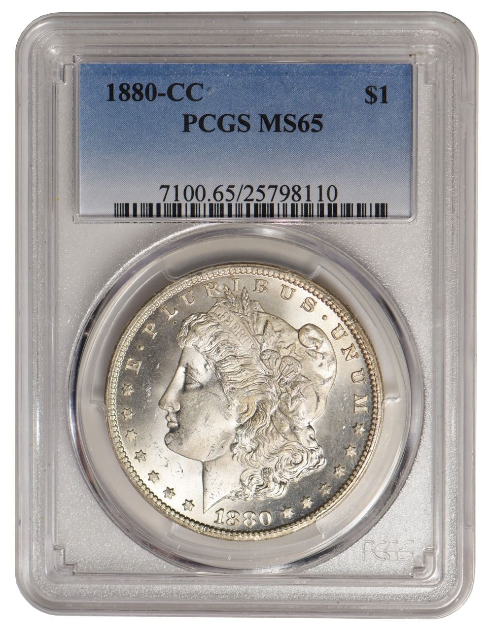 One 1880-CC $1 Morgan Silver Dollar PCGS MS65.