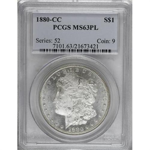 <B>1880-CC $1 MS63 Prooflike PCGS.</B></I> PCGS Population (225/361). NGC Census: (165/351). Numismedia Wsl. Price for NGC/PCGS coin in MS63: $525. (#7101)<BR><BR><B>Coin Engraver:</B> George T. Morgan<BR><BR><b>Shipping:</b> Coins & Currency (<a target="_blank" href="http://www.heritageauctions.com/common/shipping.php">view shipping information</a>)