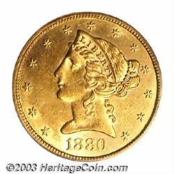 <TABLE cellSpacing=0 cellPadding=0 width="100%" bgColor=#000000 border=0><TBODY><TR><TD width="100%"><TABLE cellSpacing=1 cellPadding=3 width="100%" border=0><TBODY><TR><TD width="100%" bgColor=#79735c><FONT face=arial color=#ffffff size=3><B>Description</B> </FONT></TD></TR><TR><TD width="100%" bgColor=#ffffff><FONT face=arial size=2><B>1880-CC $5 AU58 PCGS.</B></I> Winter 2-C. Distinguished by die lines below the eye of Liberty, which cause her to appear to be "crying". The 1880-CC is a difficult and somewhat underappreciated Half Eagle from the Nevada facility that, by Carson City standards, was minted in fairly large numbers and is usually seen in well circulated grades. This near-mint survivor has several sizeable marks on the cheek of Liberty, but displays very little loss of semi-reflective luster. Population: 13 in 58, 4 finer (8/03). </FONT></TD></TR></TBODY></TABLE></TD></TR></TBODY></TABLE><BR><A name=PricesRealized></A><TABLE cellSpacing=0 cellPadding=0 width="100%" bgColor=#000000 border=0><TBODY><TR><TD width="100%"><TABLE cellSpacing=1 cellPadding=3 width="100%" border=0><TBODY><TR><TD width="100%" bgColor=#79735c><A name=PR><FONT face=arial color=#ffffff size=3><B>Previous Prices from Heritage Auctions</B> </FONT></A></TD></TR><TR><TD bgColor=#f6f6ed><TABLE cellSpacing=0 cellPadding=0 width="100%" border=1><TBODY><TR><TD align=middle width="33%"><B>Date</B></TD><TD align=middle width="33%"><B>Service</B></TD><TD align=middle width="33%"><B>Price</B></TD></TR><TR bgColor=whitesmoke><TD width="33%"><B>01/01/2001</B></TD><TD width="33%">PCGS</TD><TD width="33%">$3,680.00</TD></TR><TR bgColor=whitesmoke><TD width="33%"><B>08/07/1998</B></TD><TD width="33%">NGC</TD><TD width="33%">$5,520.00</TD></TR><TR bgColor=whitesmoke><TD width="33%"><B>09/01/1995</B></TD><TD width="33%">PCGS</TD><TD width="33%">$3,520.00</TD></TR><TR bgColor=whitesmoke><TD width="33%"><B>09/01/1998</B></TD><TD width="33%">NGC</TD><TD width="33%">$4,888.00</TD></TR></TBODY></TABLE></TD></TR><TR><TD bgColor=#ffffff><FONT face=arial size=1 ?>PLEASE NOTE: All prices realized reflect the final hammer price PLUS the buyer's premium in auctions that charge a buyer's premium. Each item has a notation at the top of the listing indicating whether that lot included a buyer's premium. Example: A item that sells with a final hammer price of $100 and a 20% buyer's premium will display with a price realized of $120. All information listed is intended to be as accurate as possible, but errors are possible. Please use this guide carefully and inform us of any inaccuracies. </FONT></TD></TR></TBODY></TABLE></TD></TR></TBODY></TABLE><BR><TABLE cellSpacing=0 cellPadding=0 width="100%" bgColor=#000000 border=0><TBODY><TR><TD width="100%"><TABLE cellSpacing=1 cellPadding=3 width="100%" border=0><TBODY><TR><TD width="100%" bgColor=#79735c colSpan=6><FONT face=arial color=#ffffff size=3><B>Price Guide*</B> </FONT></TD></TR><TR bgColor=#f6f6ed><TD align=middle><B>Grade</B> </TD><TD align=middle><B>Coin World<BR>(Trends)</B> </TD><TD align=middle><B>Numismedia<BR>Retail</B> </TD><TD align=middle><B>Numismedia<BR>Wholesale</B> </TD><TD align=middle><B>Coin<BR>Universe</B> </TD><TD align=middle><B>Heritage<BR>Value Index</B> </TD></TR><TR bgColor=#ffffff><TD align=middle>55</TD><TD align=right>$4,500.00</TD><TD align=right>---</TD><TD align=right>$2,975.00</TD><TD align=right>$4,275.00</TD><TD align=right>$3,277.50</TD></TR><TR style="FONT-WEIGHT: bold" bgColor=#cccfdd><TD align=middle>58</TD><TD align=right>$7,125.00</TD><TD align=right>---</TD><TD align=right>$4,675.00</TD><TD align=right>---</TD><TD align=right>$5,283.83</TD></TR><TR bgColor=#ffffff><TD align=middle>60</TD><TD align=right>$11,500.00</TD><TD align=right>---</TD><TD align=right>$7,825.00</TD><TD align=right>---</TD><TD align=right>$7,265.00</TD></TR><TR bgColor=#ffffff><TD colSpan=6><FONT size=1>*All information listed is intended to be as accurate as possible, but errors are possible. No item may be returned or refused based on this information which is provided as a service to our customers. You should contact each pricing source directly to determine the accuracy of this information. </FONT></TD></TR></TBODY></TABLE></TD></TR></TBODY></TABLE><BR><TABLE cellSpacing=0 cellPadding=0 width="100%" bgColor=#000000 border=0><TBODY><TR><TD width="100%"><TABLE cellSpacing=1 cellPadding=3 width="100%" border=0><TBODY><TR><TD width="100%" bgColor=#79735c><FONT face=arial color=#ffffff size=3><B>Population Guide</B> </FONT></TD></TR><TR bgColor=#ffffff><TD align=middle><!-- Begin Output of Population Grid--><TABLE cellSpacing=0 cellPadding=0 width="100%" border=0><TBODY><TR><TD vAlign=center><TABLE cellSpacing=0 width="100%" border=1 cellsadding="3"><TBODY><TR><TD vAlign=center><TABLE cellSpacing=0 cellPadding=3 width="100%" border=1><TBODY><TR><TD vAlign=center align=middle bgColor=#f0f1e8 colSpan=2 <CENTER><FONT face=Arial size=2><B>PCGS Pop </B></FONT><CENTER></CENTER></TD><TD vAlign=center align=middle bgColor=#f0f1e8 colSpan=2><CENTER><FONT face=Arial size=2><B>NGC Pop</B></CENTER></FONT></TD></TR><TR><TD vAlign=center><FONT face=Arial size=2>(58)</FONT> </TD><TD vAlign=center align=right><FONT face=Arial size=2>13</FONT> </TD><TD vAlign=center><FONT face=Arial size=2>(58)</FONT> </TD><TD vAlign=center align=right><FONT face=Arial size=2>27</FONT> </TD></TR><TR><TD vAlign=center><FONT face=Arial size=2>(>58)</FONT> </TD><TD vAlign=center align=right><FONT face=Arial size=2>4</FONT> </TD><TD vAlign=center><FONT face=Arial size=2>(>58)</FONT> </TD><TD vAlign=center align=right><FONT face=Arial size=2>15</FONT> </TD></TR></TBODY></TABLE></TD></TR></TBODY></TABLE></TD></TR></TBODY></TABLE><!-- End Output of Population Grid--> Important notice: Heritage usually auctions material at the rate of 200-250 lots per hour. On some occasions eBay Live bid software or the Internet may not be able to keep up with the pace of the auction. We recommend placing a realistic absentee bid 