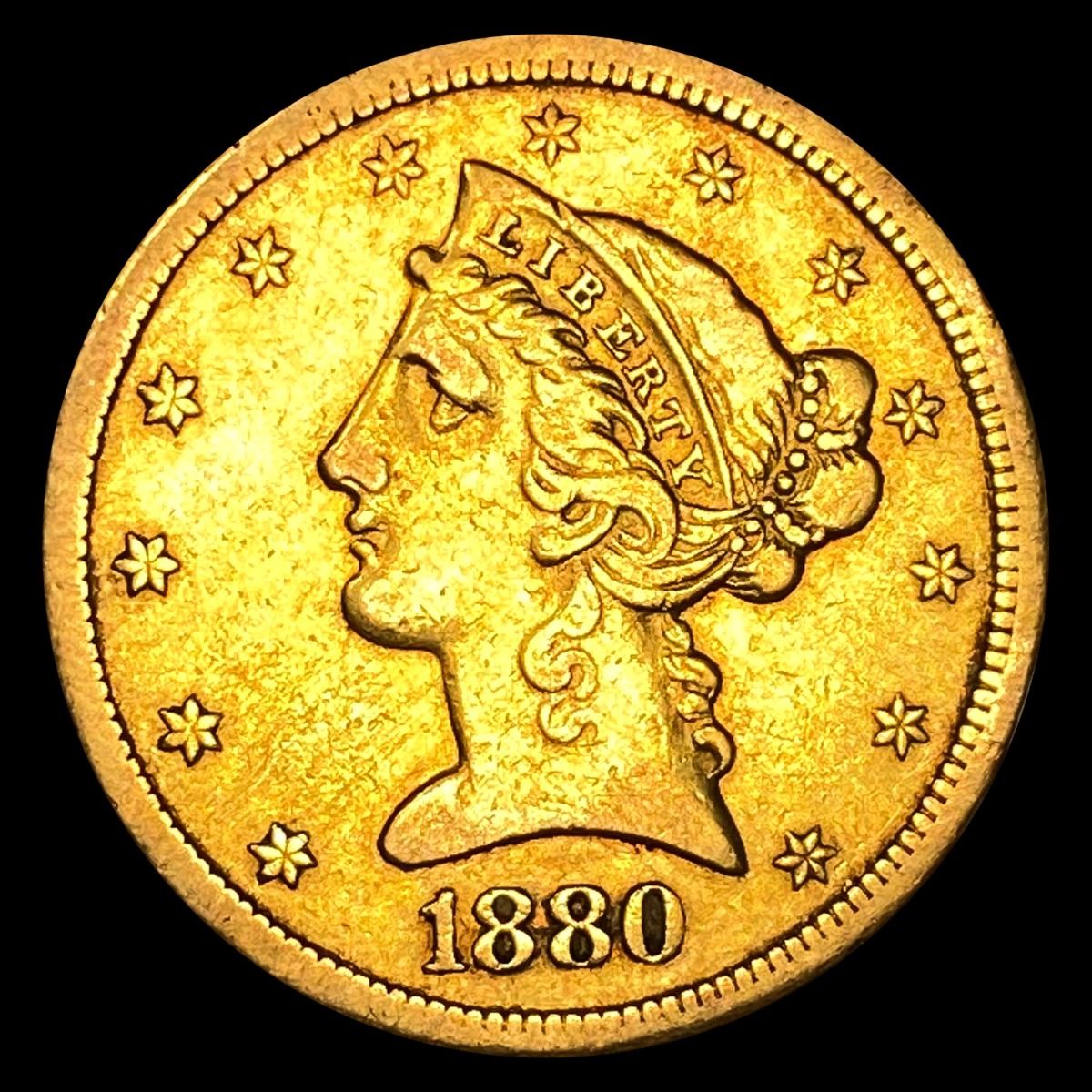1880-CC $5 Gold Half Eagle CLOSELY UNCIRCULATED