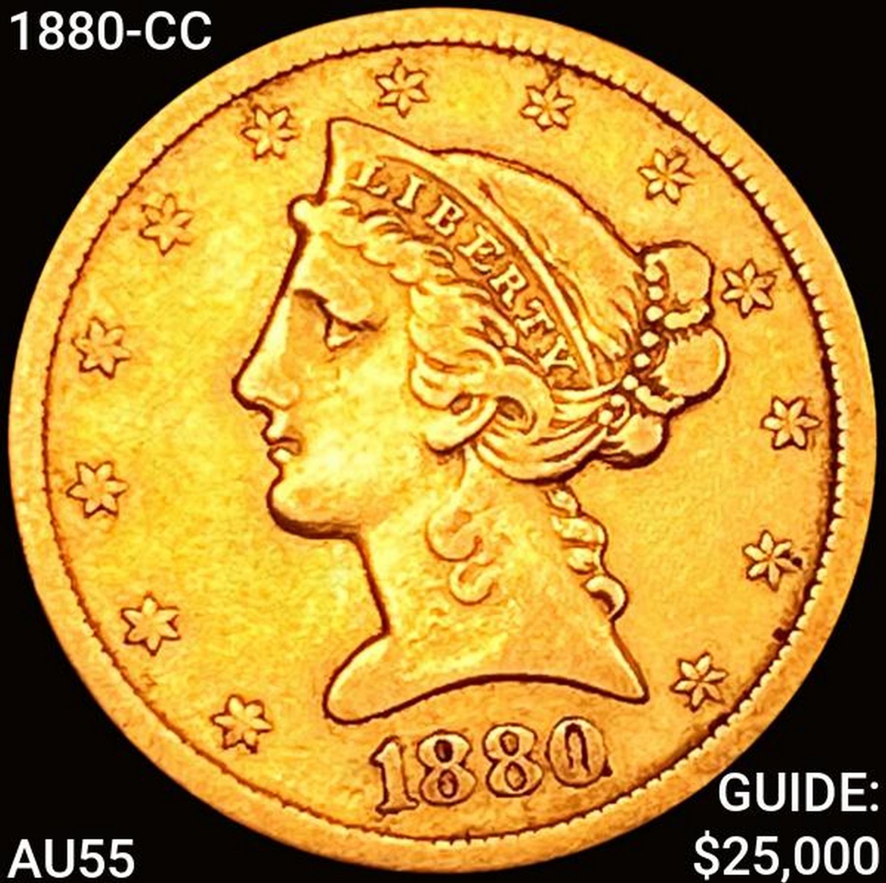 1880-CC $5 Gold Half Eagle CLOSELY UNCIRCULATED