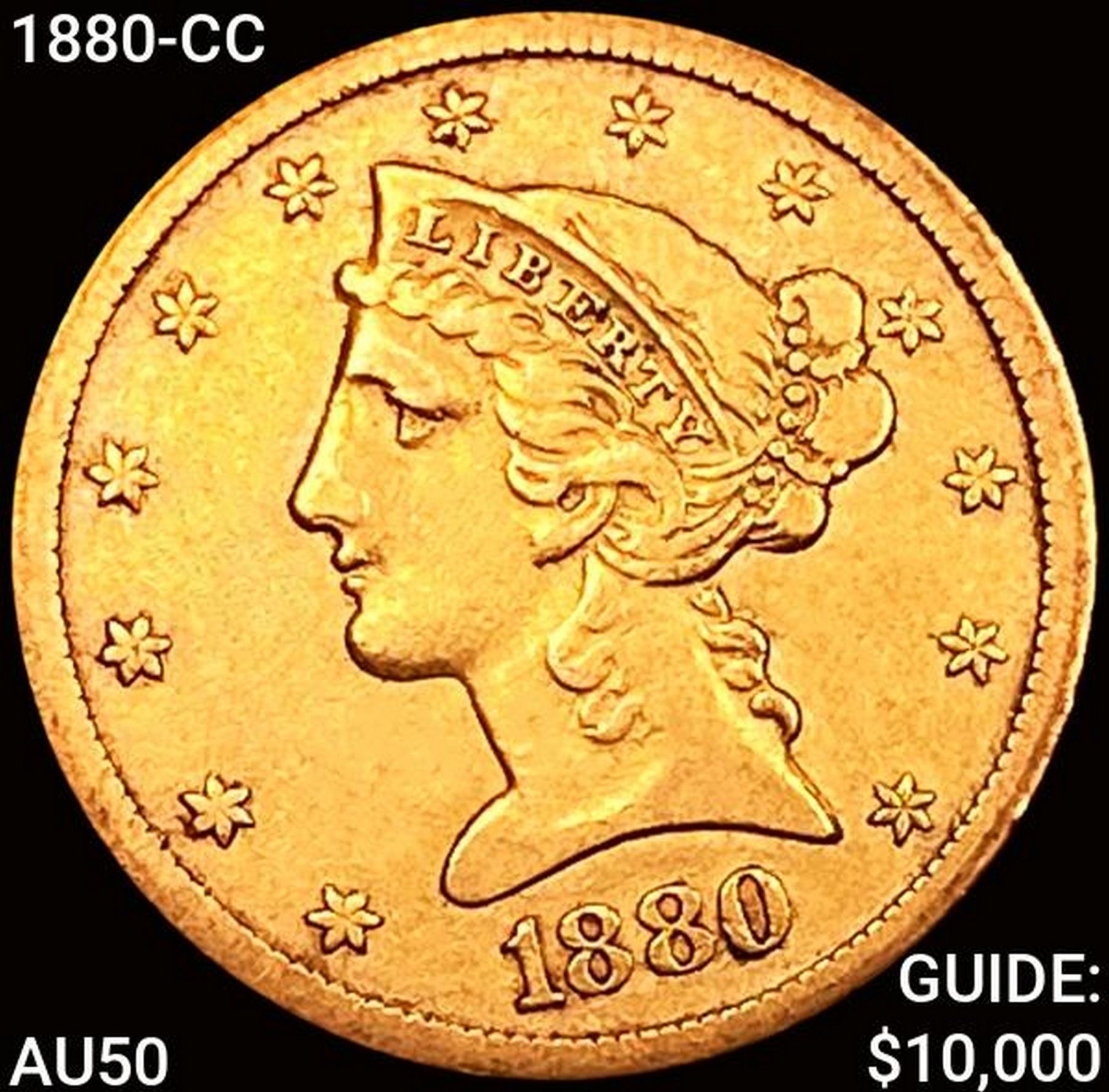 1880-CC $5 Gold Half Eagle CLOSELY UNCIRCULATED