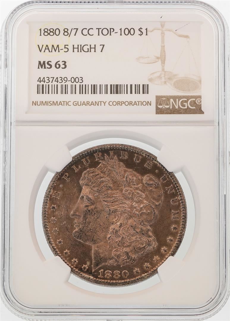 One 1880-CC 8/7 $1 Morgan Silver Dollar Coin NGC MS63 VAM-5 HIGH 7 TOP-100 AMAZING TONING. NGC Certified.