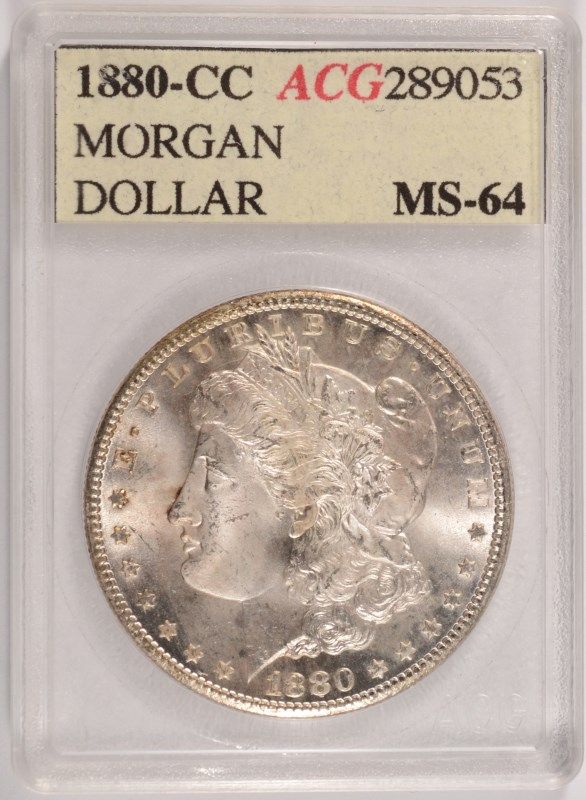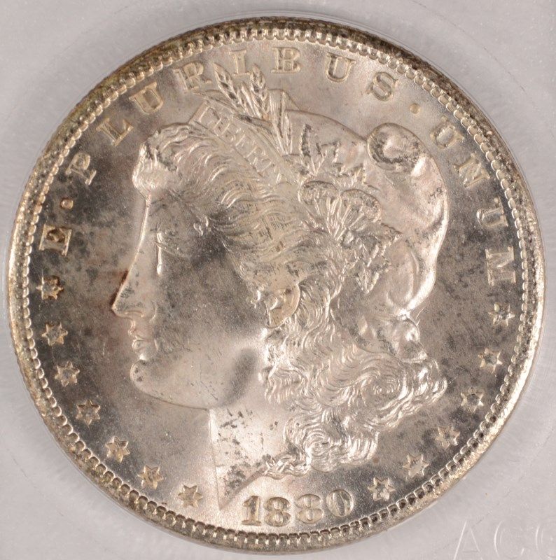 1880-CC MORGAN SILVER DOLLAR, ACG MS-64 WHITE!