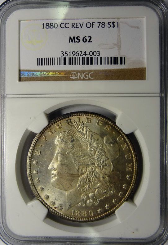 1880-CC MORGAN SILVER DOLLAR REV. OF 78 NGC MS62