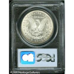 <B>1880-CC<img border='0' src='http://www.heritagecoins.com/images/star.gif' width=10 height=10>$1 MS63 PCGS.</B></I> A few freckles of russet and navy-blue color enrich the right obverse border, the satiny surfaces are otherwise untoned. Moderate softness of strike is noted on the eagle's tail. Devoid of distracting marks. Lot:9964