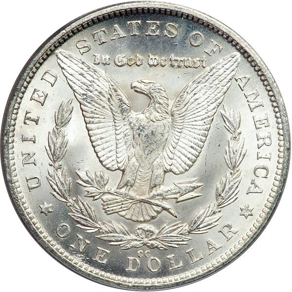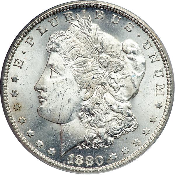 1880-CC Morgan Dollar. Reverse of 1879. PCGS graded MS-64. Frosty and mostly white, approaching Gem quality (PCGS # 7100) .