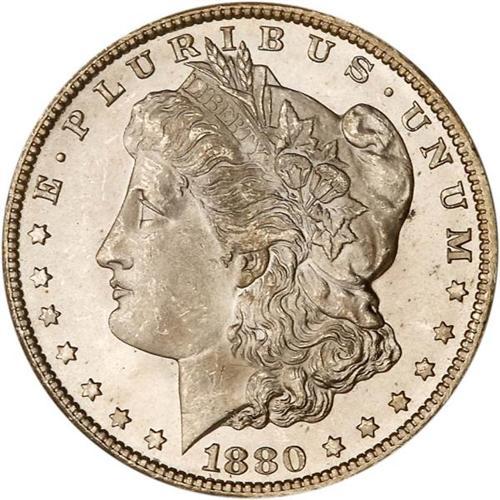 <b>1880-CC Morgan Dollar. Reverse of 1879. PCGS graded MS66.</b> Bold silver color, untoned, the coin demonstrating lots of cartwheel luster in this outstanding grade. A thing of beauty in the eyes of any diehard collector <b>(PCGS # 7100)</b>