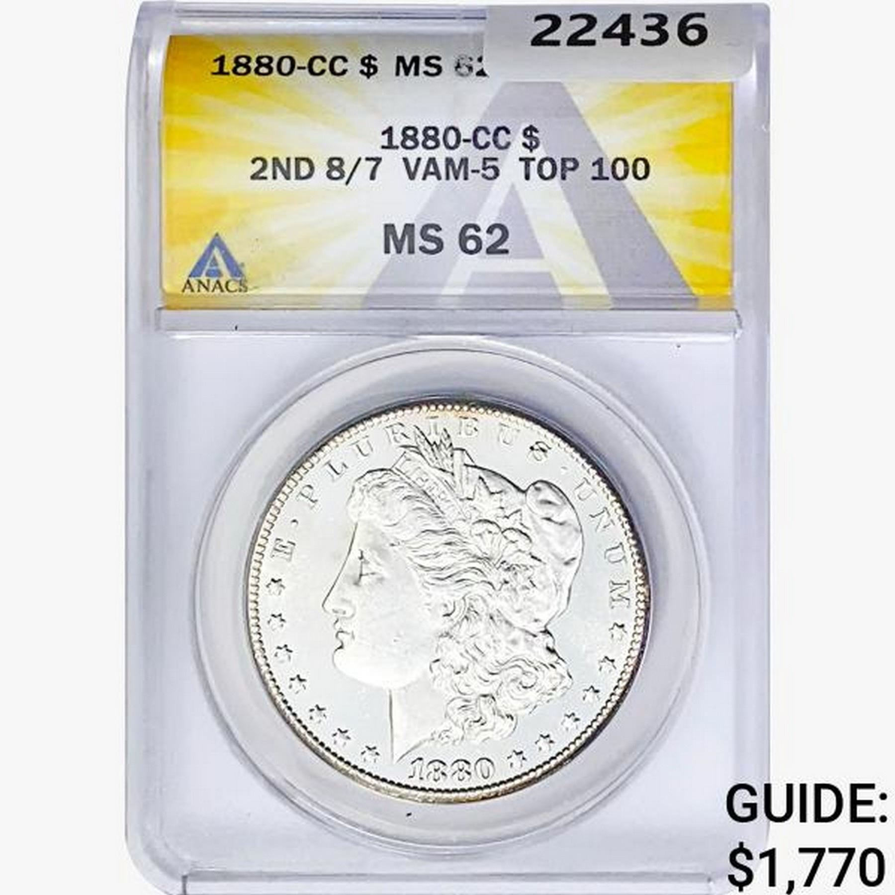 1880-CC Morgan Silver Dollar ANACS MS62 2ND 8/7 VA