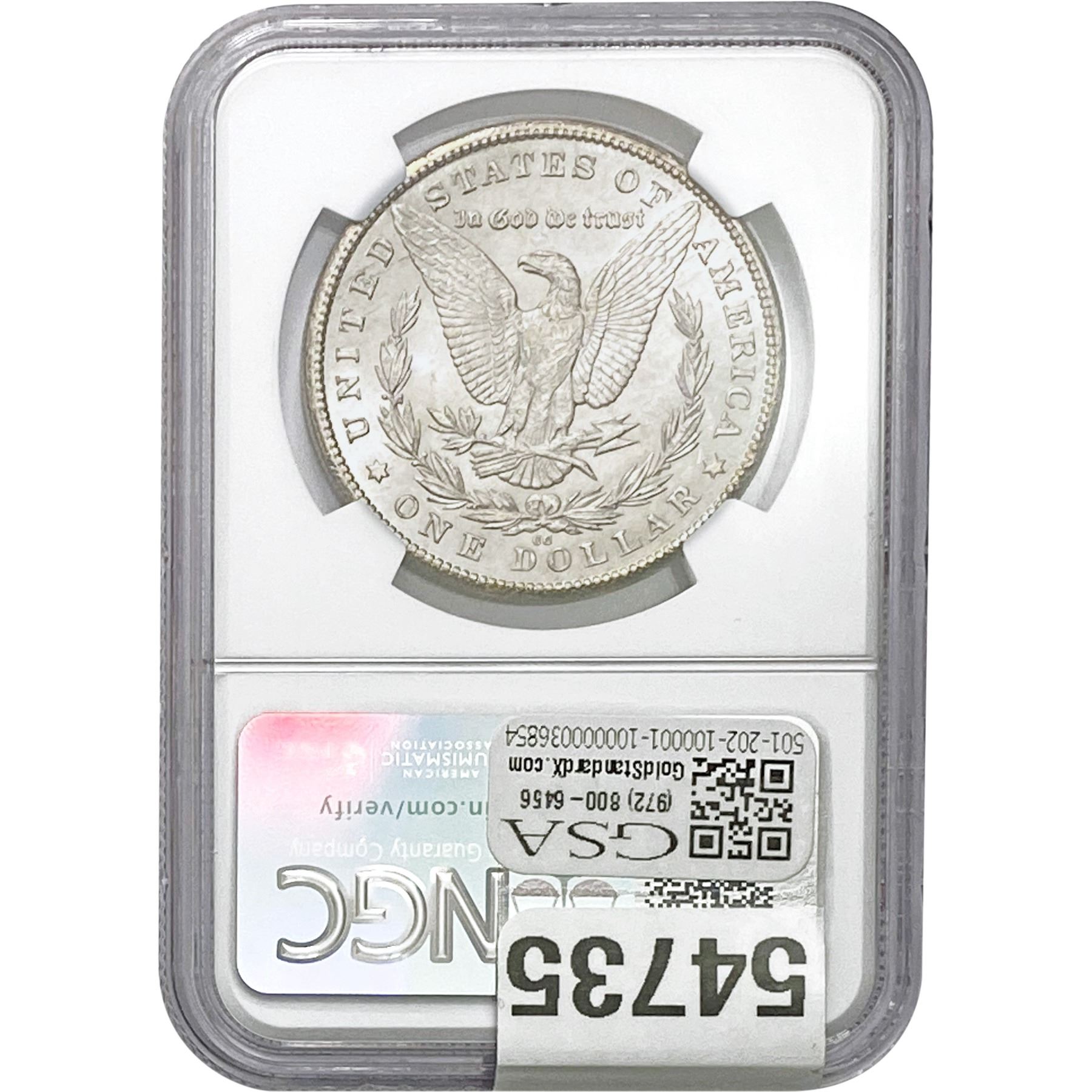 e. Coins sold referencing a third-party grading service are sold “AS IS” without any express or implied warranty, except for a guarantee by GSA that they are genuine. Removal or alteration of the holder, voids all of Bidder’s claims concerning that Product. Certain warranties may be available from the grading services and Bidders are referred to them for further details: Numismatic Guaranty Corporation (NGC), PO Box 4776, Sarasota, FL 34230, www.ngccoin.com/services/writtenguarantee.asp; Professional Coin Grading Services (PCGS), PO Box 9458, Newport Beach, CA 92658, www.pcgs.com/guarantee.html; ANACS, 6555 S. Kenton St., Ste. 303, Englewood, CO 80111; and Independent Coin Grading Co. (ICG), 7901 East Bellview, Ave., Suite 50, Englewood, CO 80111.