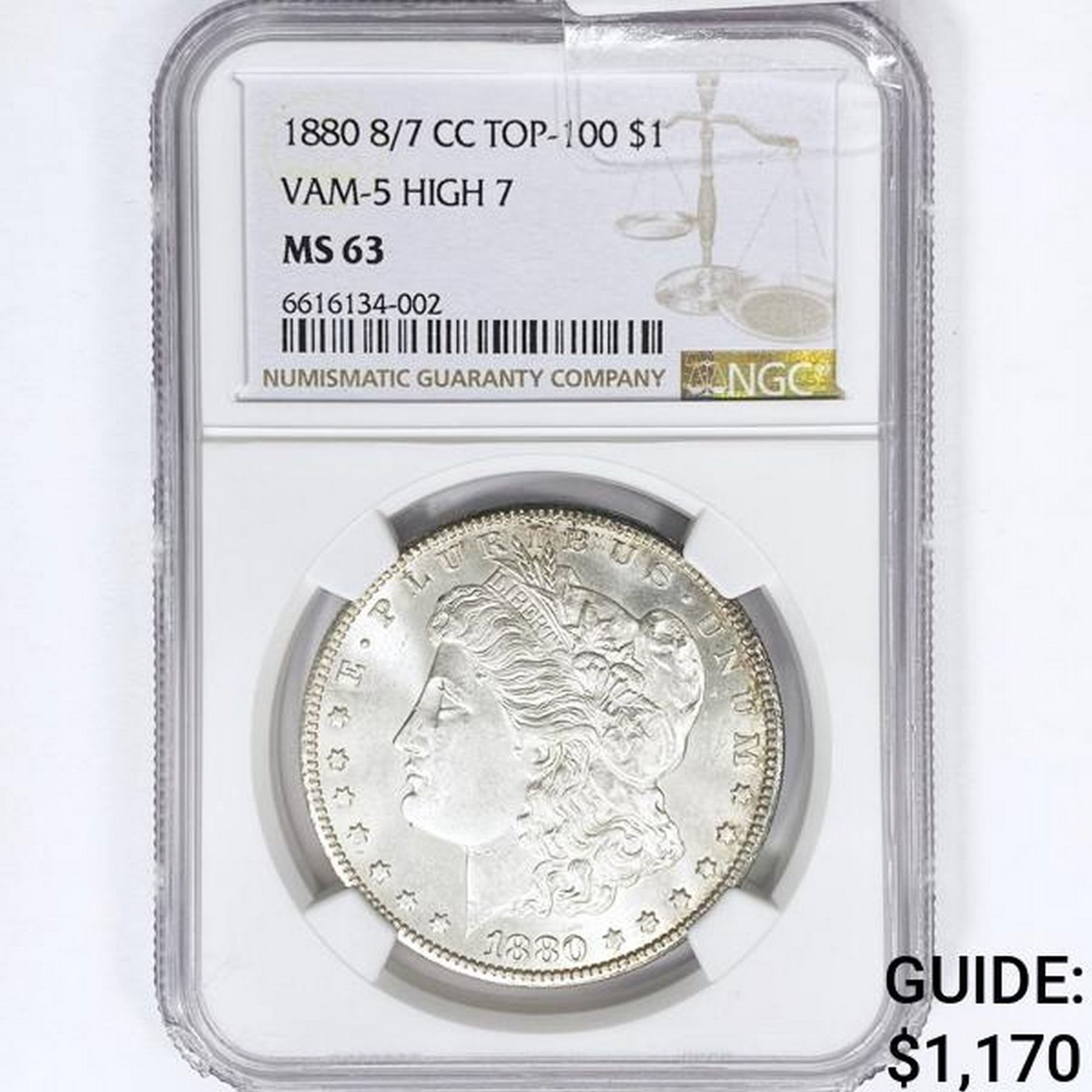 1880-CC Morgan Silver Dollar NGC MS63 VAM-5 8/7