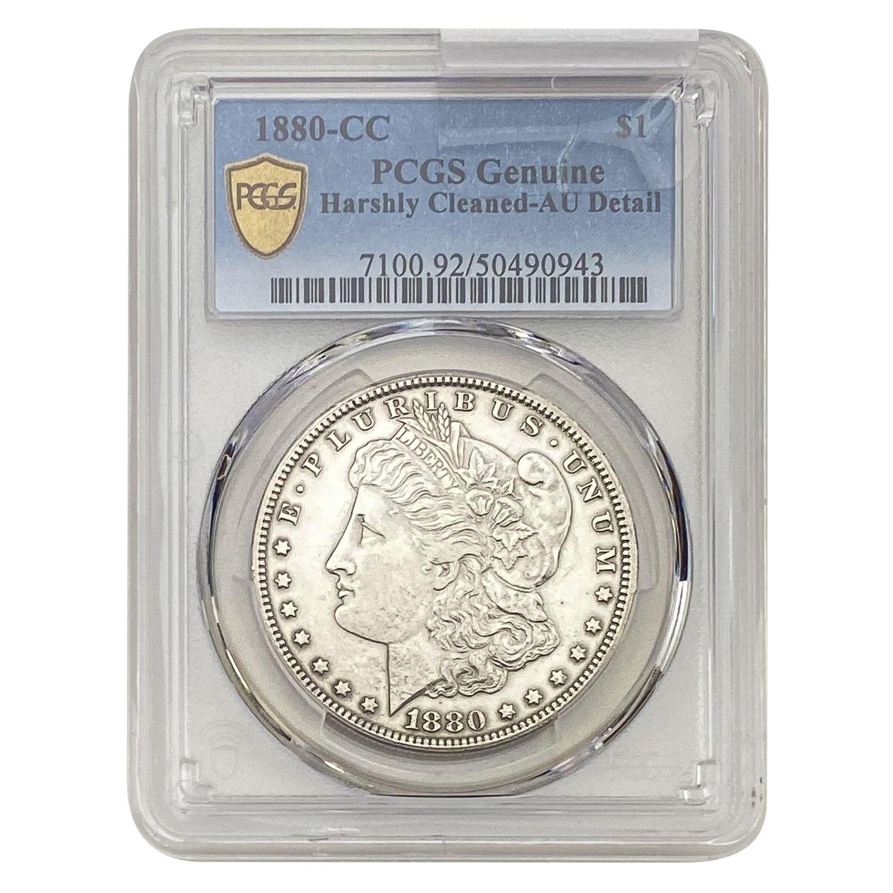 1880-CC Morgan Silver Dollar PCGS AU Detail Harshly Cleaned