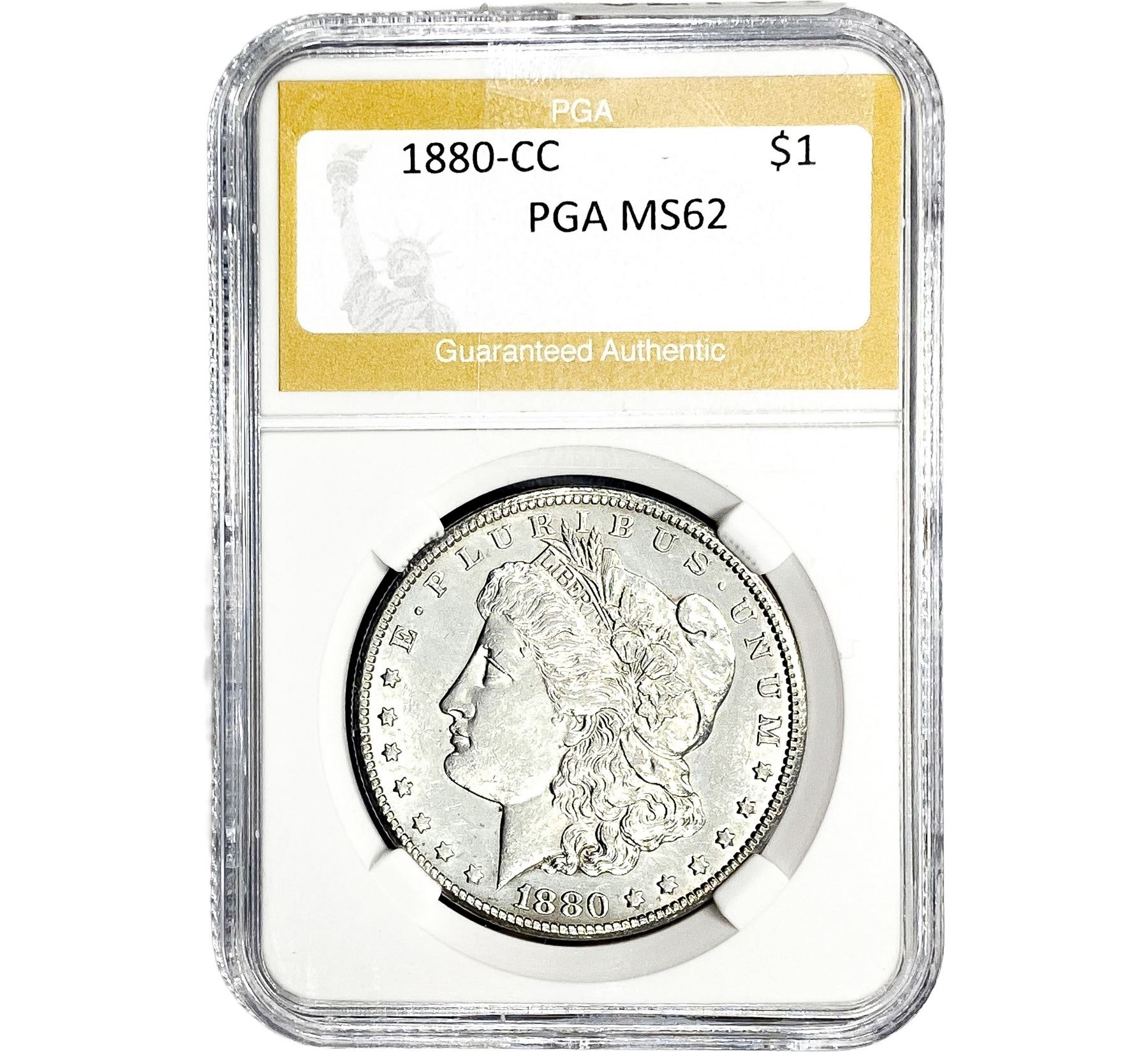 COINS AND CURRENCY LISTED IN GSA’S CATALOG AS GRADED AND ENCAPSULATED BY PCGS, NGC, ANACS, ICG, PCGS CURRENCY, PMG, PCGS BANKNOTE GRADING, CMC OR ANY OTHER THIRD-PARTY GRADING SERVICE ARE LIKEWISE SOLD “AS-IS” EXCEPT AS EXPRESSLY SET FORTH HEREIN. ALL THIRD-PARTY GRADING SERVICE GUARANTEES, INCLUDING AUTHENTICITY, ARE THE SOLE RESPONSIBILITY OF THE THIRD-PARTY GRADING SERVICE AND NOT WARRANTIES OR GUARANTEES OF GSA. BIDDERS SHOULD CONTACT THESE THIRD-PARTY GRADING SERVICES DIRECTLY WITH RESPECT TO ANY CLAIMS OR QUESTIONS THEY MAY HAVE CONCERNING THEIR GUARANTEES AND WARRANTIES. BIDDERS ACKNOWLEDGE AND AGREE THAT AUCTIONEER IS NOT BOUND BY OR LIABLE FOR ANY OPINION OR CERTIFICATION BY ANY THIRD-PARTY GRADING SERVICE. REMOVAL OF A PRODUCT FROM ITS PROTECTIVE CASING OR HOLDER OR ALTERATION OF ANY COIN HOLDER WAIVES ALL RIGHTS CONCERNING THE PRODUCT CONTAINED THEREIN.