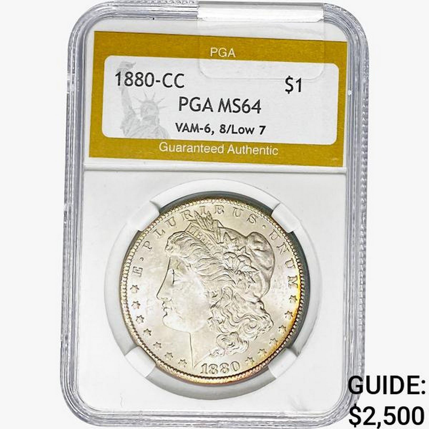 1880-CC Morgan Silver Dollar PGA MS64 8/Low 7