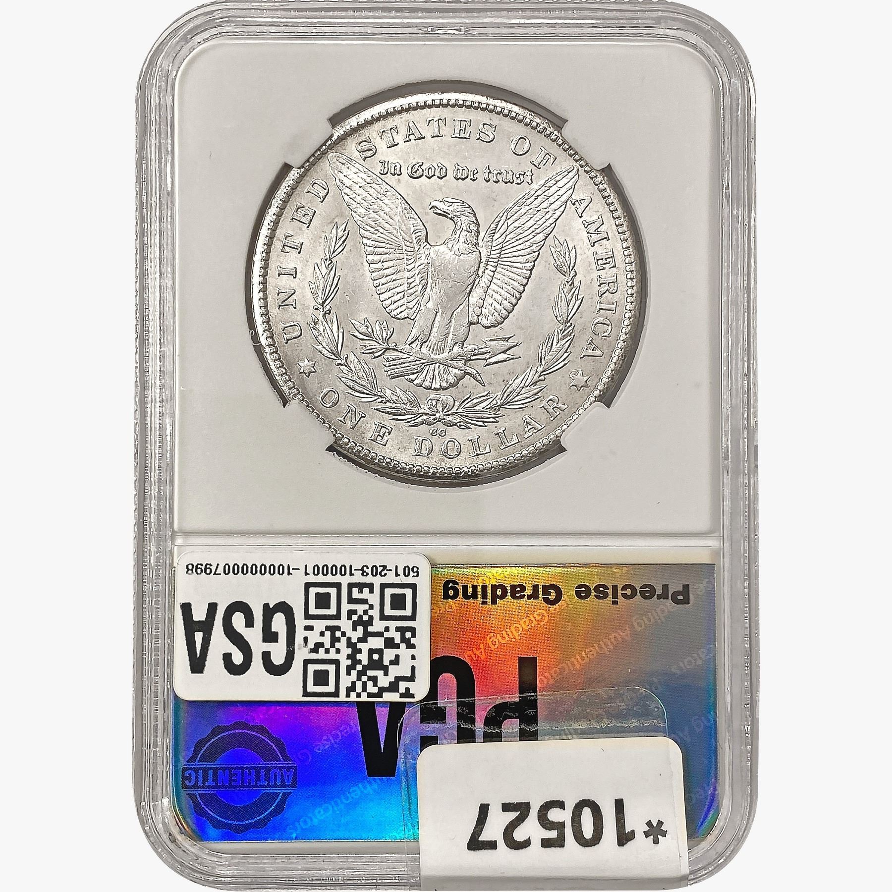 e. Coins sold referencing a third-party grading service are sold “AS IS” without any express or implied warranty, except for a guarantee by GSA that they are genuine. Removal or alteration of the holder, voids all of Bidder’s claims concerning that Product. Certain warranties may be available from the grading services and Bidders are referred to them for further details: Numismatic Guaranty Corporation (NGC), PO Box 4776, Sarasota, FL 34230, www.ngccoin.com/services/writtenguarantee.asp; Professional Coin Grading Services (PCGS), PO Box 9458, Newport Beach, CA 92658, www.pcgs.com/guarantee.html; ANACS, 6555 S. Kenton St., Ste. 303, Englewood, CO 80111; and Independent Coin Grading Co. (ICG), 7901 East Bellview, Ave., Suite 50, Englewood, CO 80111.