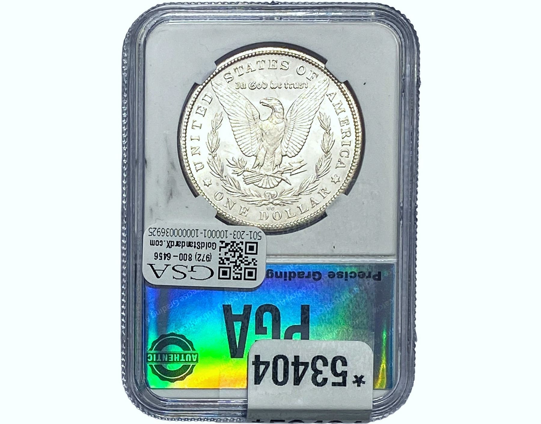 l. All non-certified coins and currency are guaranteed genuine, but are not guaranteed as to grade, since grading is a matter of opinion, an art and not a science, and therefore the description rendered by GSA or any third-party grading service may not agree with the opinion of others (including trained experts), and the same expert may not grade the same item with the same grade at two different times. GSA may, but is not obligated to, express an opinion as to non-certified numismatic items, in GSA’s opinion, or by its employees’ experience and the current interpretation of the American Numismatic Association’s standards as of the date the catalog was prepared. There is no guarantee or warranty expressed or implied that the grading opinions utilized by GSA, if any, will meet the standards of any grading service at any time in the future.