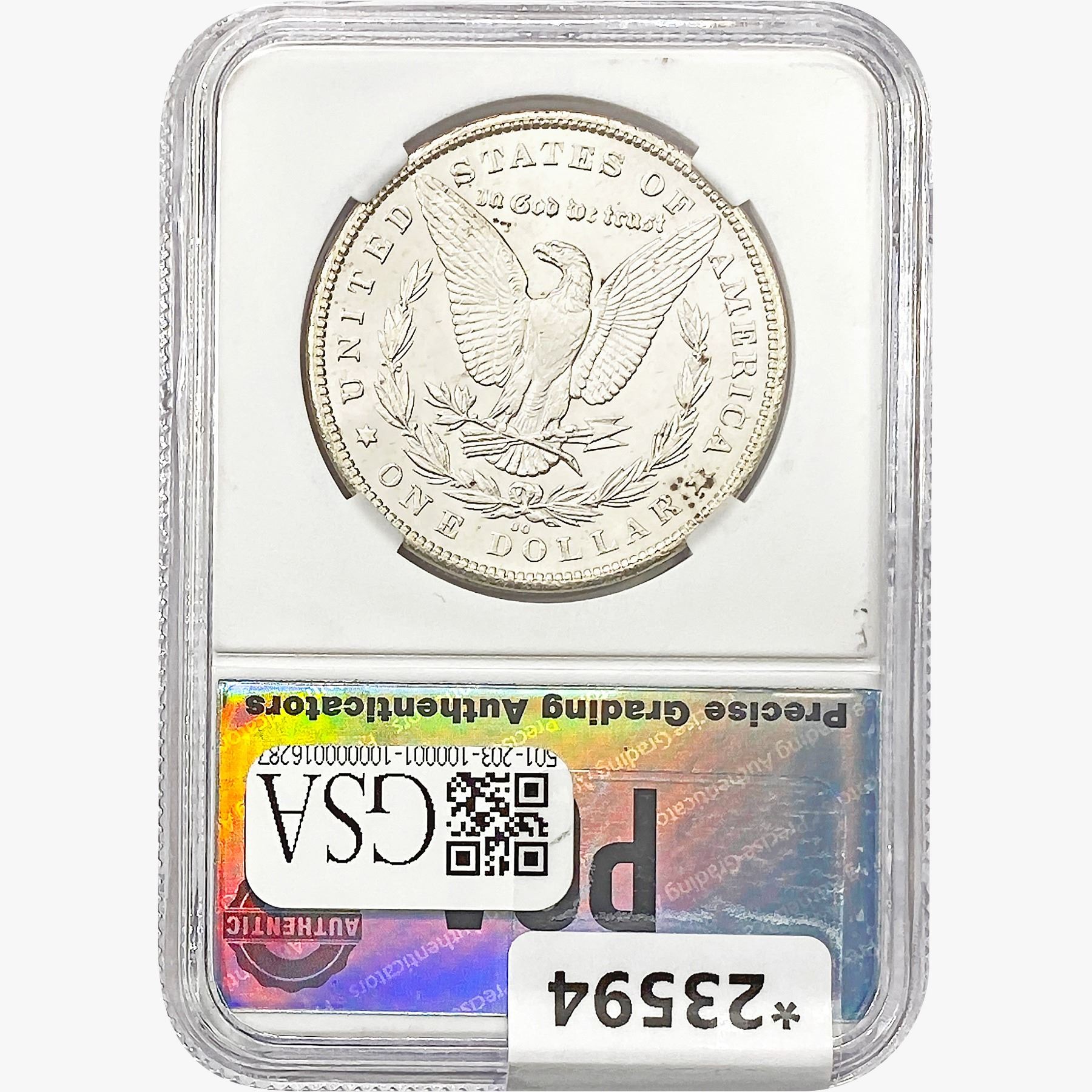 COINS AND CURRENCY LISTED IN GSA’S CATALOG AS GRADED AND ENCAPSULATED BY PCGS, NGC, ANACS, ICG, PCGS CURRENCY, PMG, PCGS BANKNOTE GRADING, CMC OR ANY OTHER THIRD-PARTY GRADING SERVICE ARE LIKEWISE SOLD “AS-IS” EXCEPT AS EXPRESSLY SET FORTH HEREIN. ALL THIRD-PARTY GRADING SERVICE GUARANTEES, INCLUDING AUTHENTICITY, ARE THE SOLE RESPONSIBILITY OF THE THIRD-PARTY GRADING SERVICE AND NOT WARRANTIES OR GUARANTEES OF GSA. BIDDERS SHOULD CONTACT THESE THIRD-PARTY GRADING SERVICES DIRECTLY WITH RESPECT TO ANY CLAIMS OR QUESTIONS THEY MAY HAVE CONCERNING THEIR GUARANTEES AND WARRANTIES. BIDDERS ACKNOWLEDGE AND AGREE THAT AUCTIONEER IS NOT BOUND BY OR LIABLE FOR ANY OPINION OR CERTIFICATION BY ANY THIRD-PARTY GRADING SERVICE. REMOVAL OF A PRODUCT FROM ITS PROTECTIVE CASING OR HOLDER OR ALTERATION OF ANY COIN HOLDER WAIVES ALL RIGHTS CONCERNING THE PRODUCT CONTAINED THEREIN.
