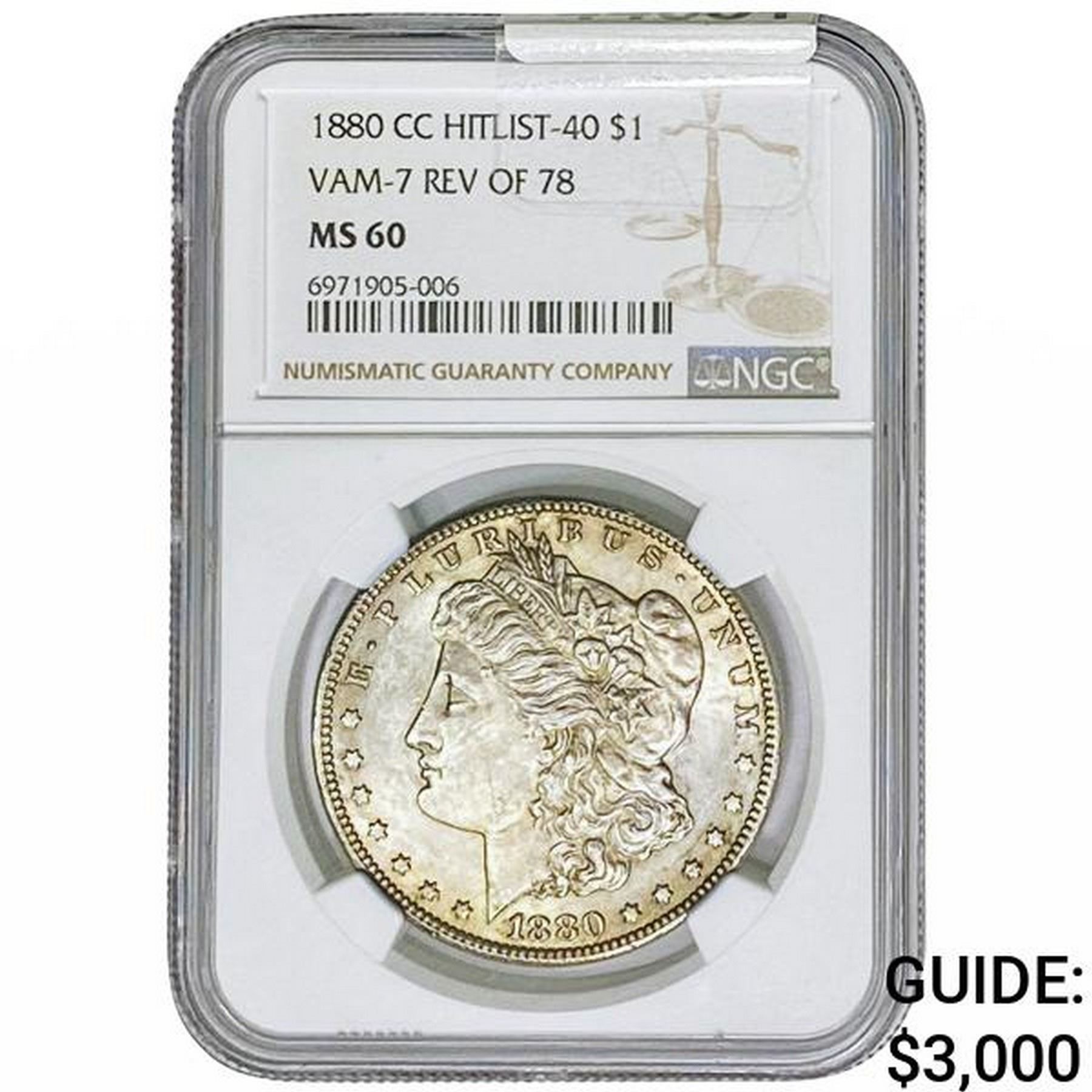 1880-CC REV78 Morgan Silver Dollar NGC MS60 VAM-7