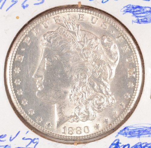 1880-CC REVERSE OF 1879 MORGAN SILVER DOLLAR, MS-63