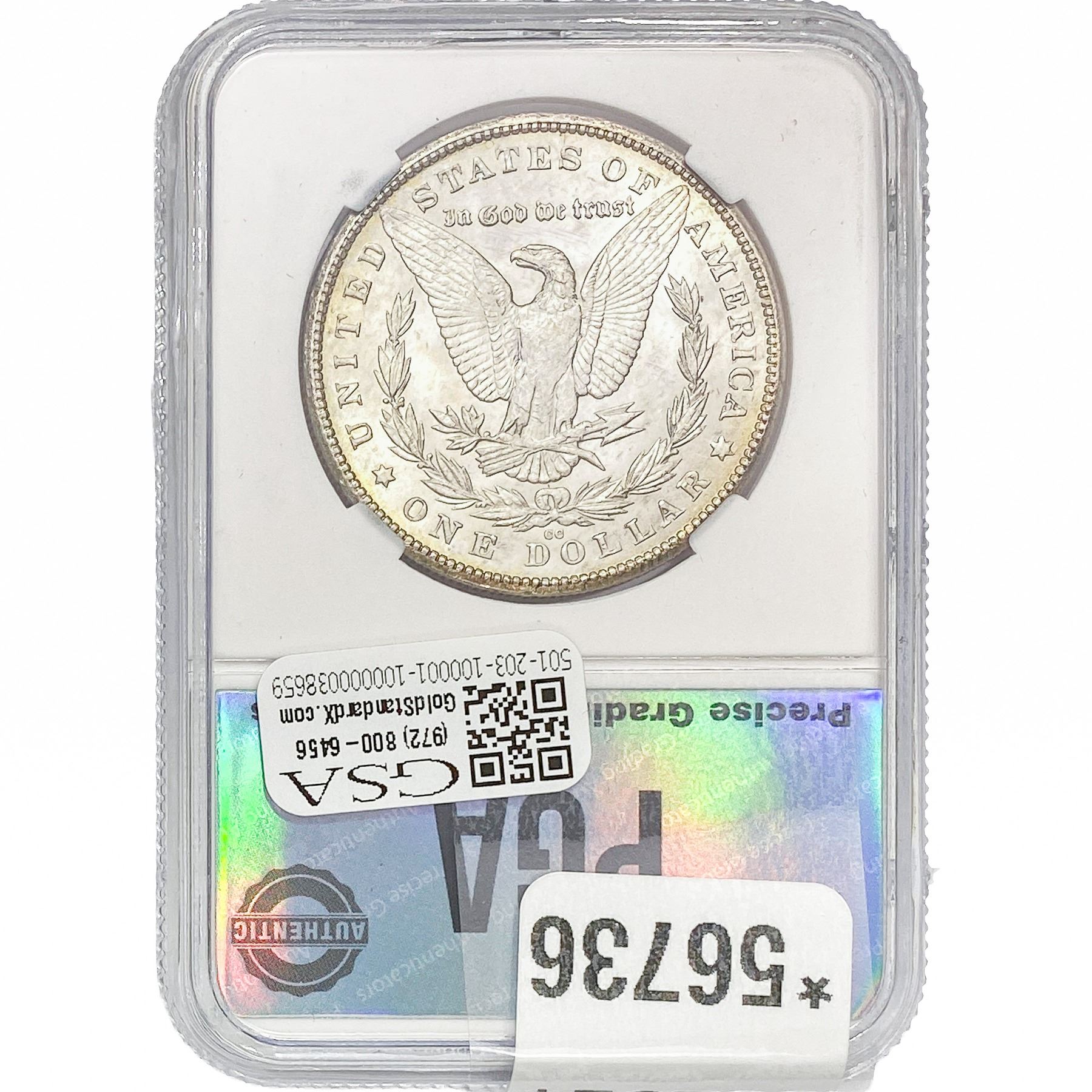 e. Coins sold referencing a third-party grading service are sold “AS IS” without any express or implied warranty, except for a guarantee by GSA that they are genuine. Removal or alteration of the holder, voids all of Bidder’s claims concerning that Product. Certain warranties may be available from the grading services and Bidders are referred to them for further details: Numismatic Guaranty Corporation (NGC), PO Box 4776, Sarasota, FL 34230, www.ngccoin.com/services/writtenguarantee.asp; Professional Coin Grading Services (PCGS), PO Box 9458, Newport Beach, CA 92658, www.pcgs.com/guarantee.html; ANACS, 6555 S. Kenton St., Ste. 303, Englewood, CO 80111; and Independent Coin Grading Co. (ICG), 7901 East Bellview, Ave., Suite 50, Englewood, CO 80111.