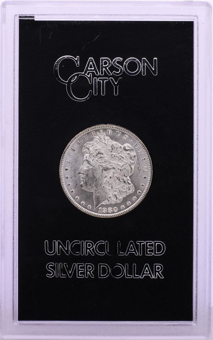 One 1880-CC Reverse of 78' $1 Morgan Silver Dollar Coin GSA Hoard Uncirculated w/Box COA.