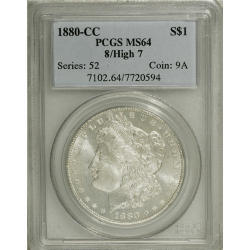 1880-CC S$1 8 Over High 7 MS64 PCGS. VAM-5. A Top 100